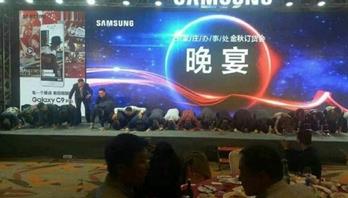 Samsung, Çin’de gerçekleştirdiği etkinlikte bayilerle buluştu. Etkinlikte, Samsung yöneticileri Galaxy Note 7 olayı yüzünden sahnede diz çöktü.